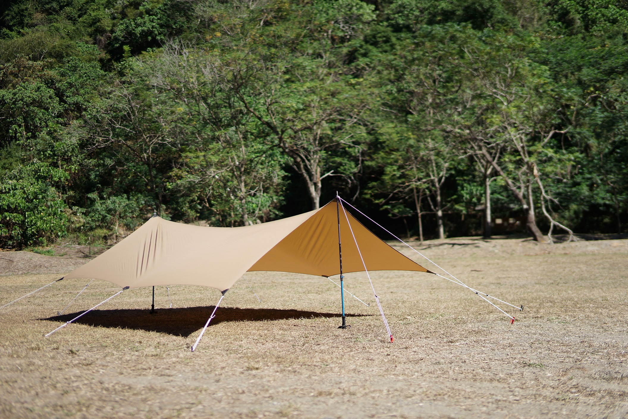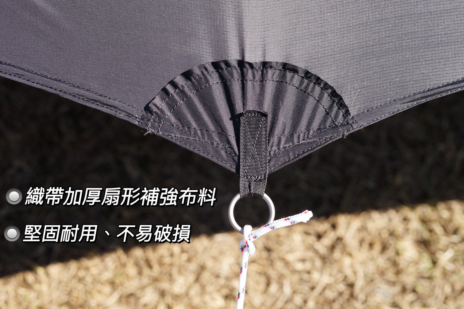 ● 適合搭建於小帳上方,具擋風、遮陽效果,能延長帳篷壽命