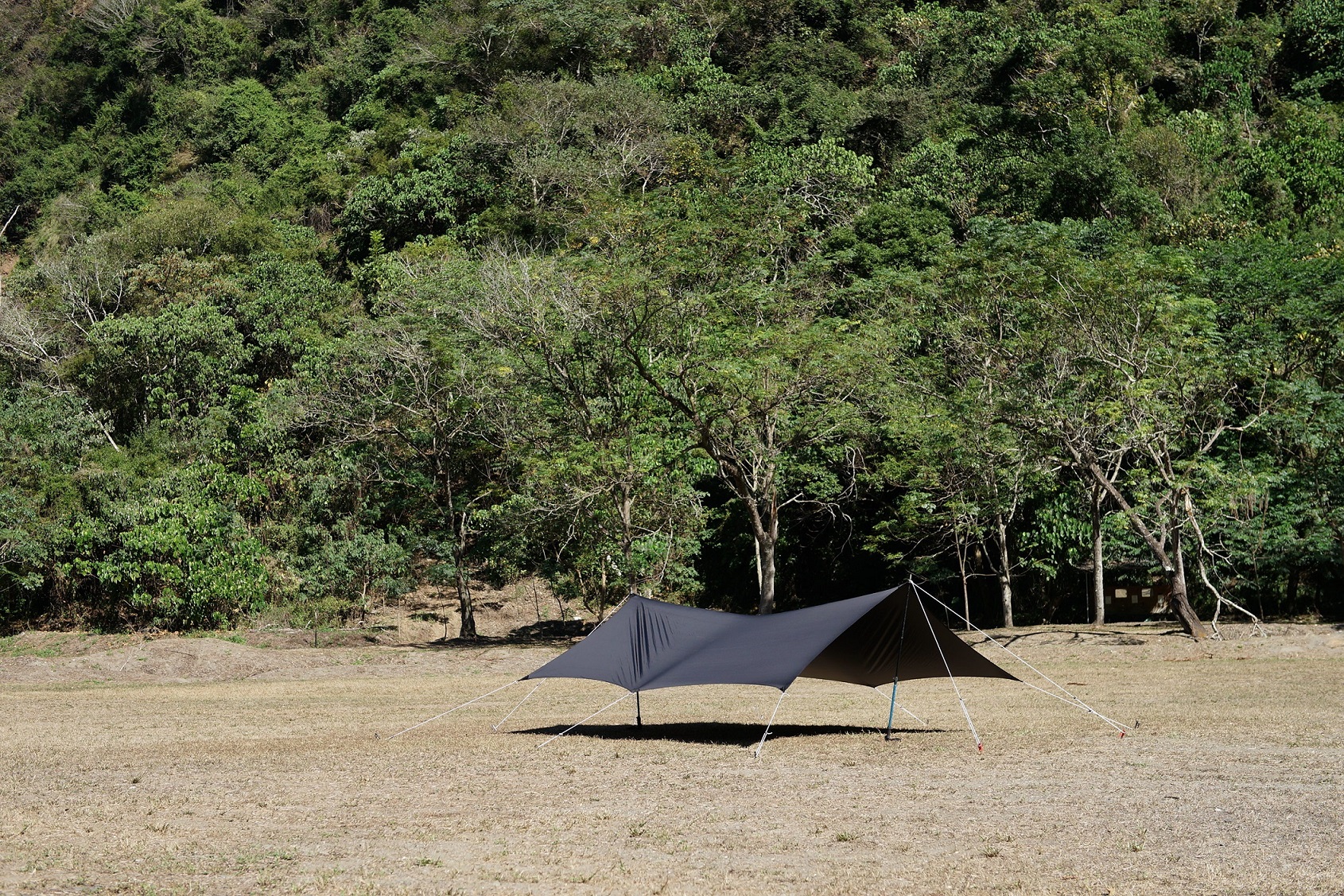 在台灣高山縱走行程,可使用此款天幕簡單的搭建配露宿袋,做為簡便的遮風避雨區。
