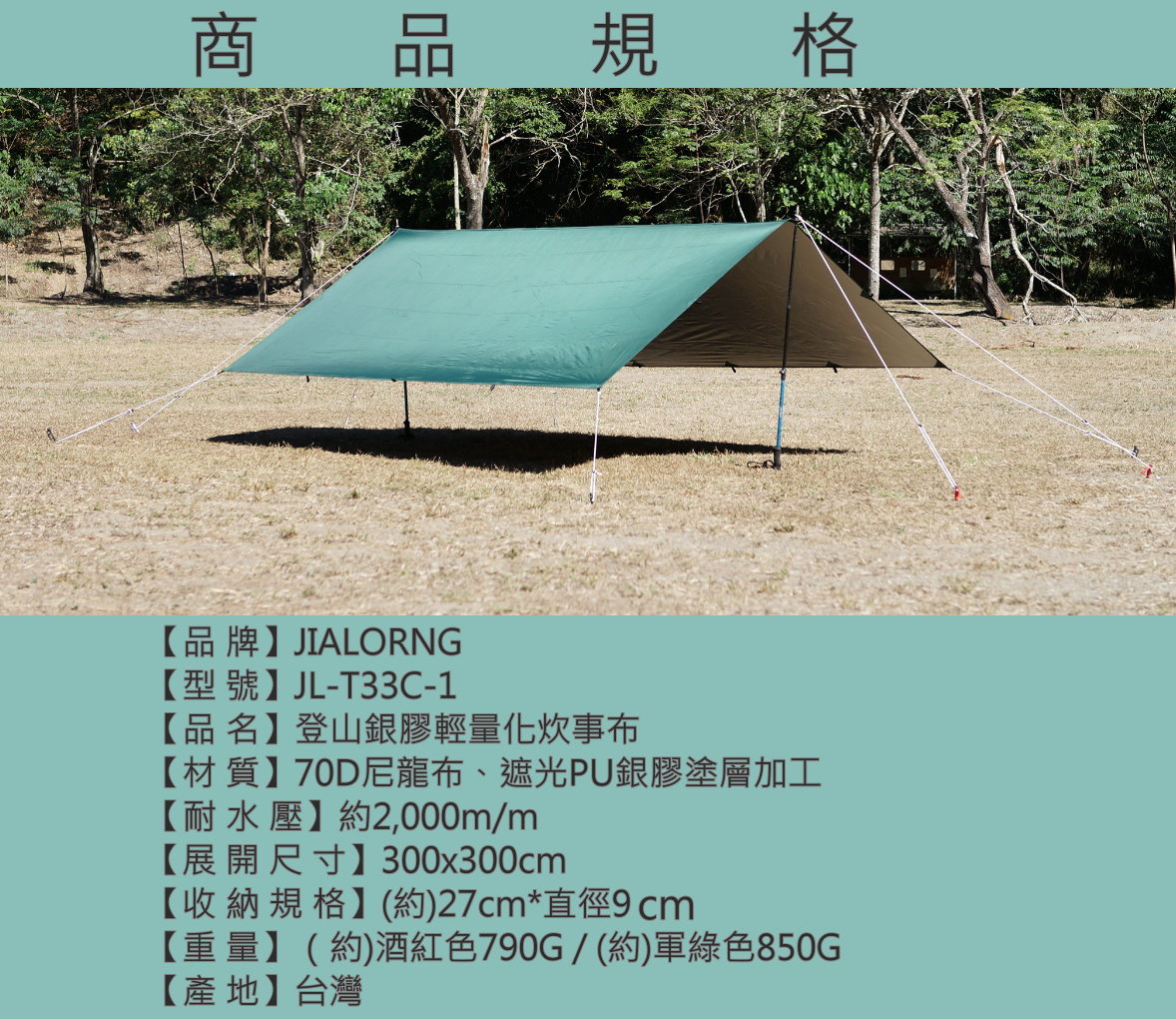 【JIALORNG 嘉隆】JIALORNG 70D登山銀膠輕量化 炊事布 台灣製 登山帳 天幕帳 天幕布