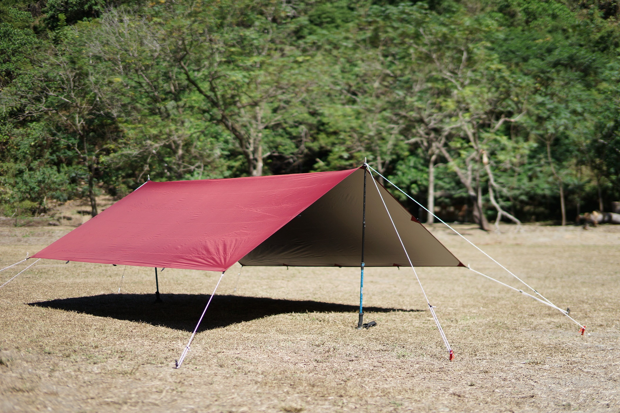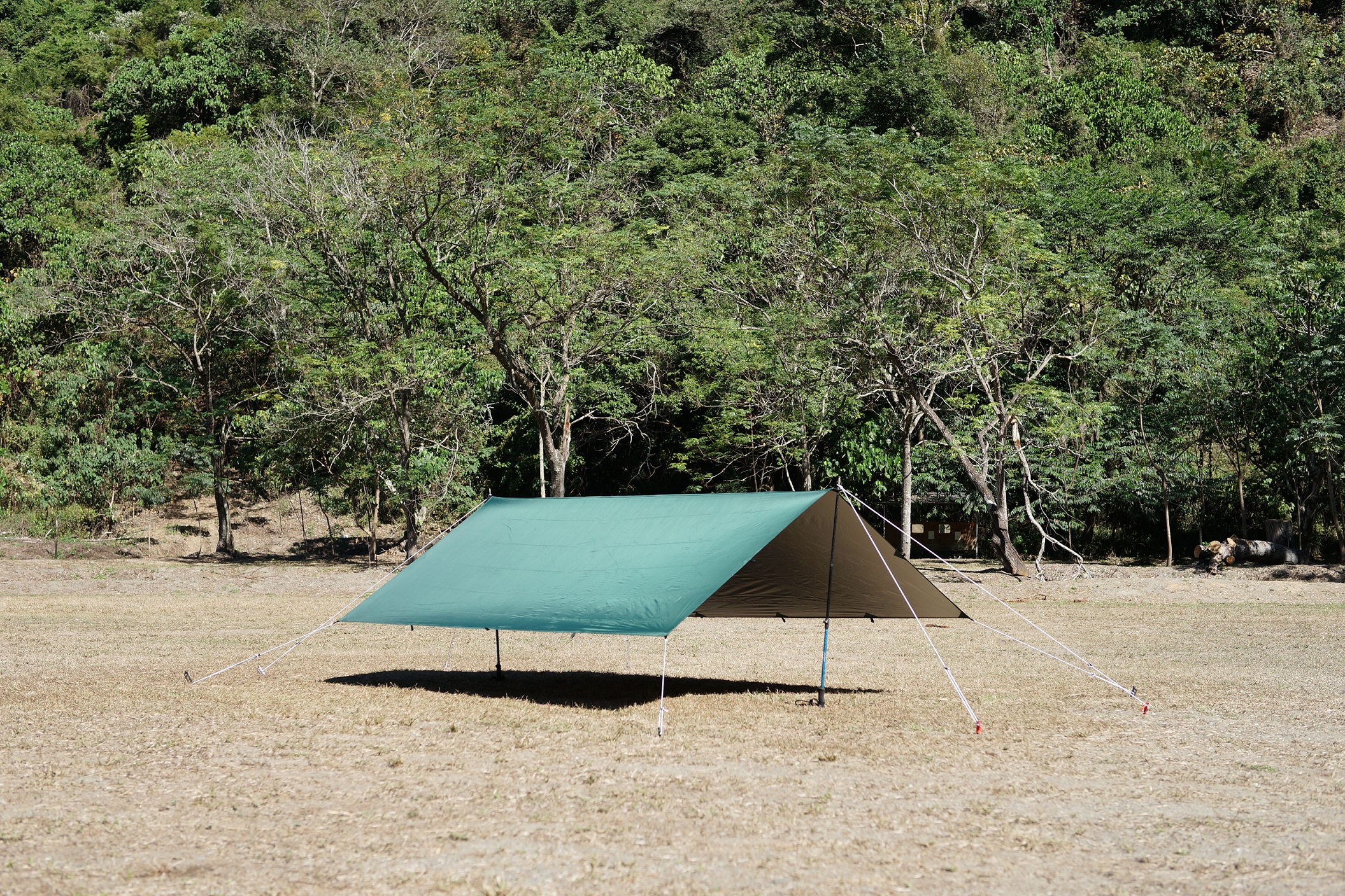 在台灣高山縱走行程,可使用此款天幕簡單的搭建配露宿袋,做為簡便的遮風避雨區。