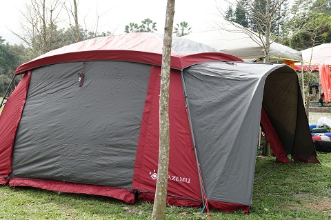 (4)客廳型帳篷=一層遮光防水的頂布層+客廳頂布的遮光防水層等於有兩層的遮光層與防水層,加倍的防水與遮光。