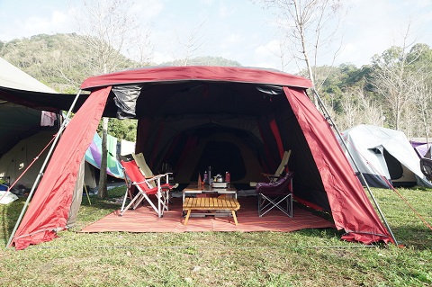 優點:利用客廳帳連結鋁柱配件,將兩頂客廳做連接,享受寛廣的空間運用。