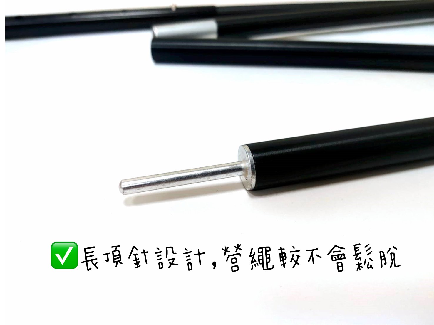 ‧採用7001鋁合金營柱製造,提供極佳的金屬韌性,可採用直徑較小的管材,就能達到比6061更高的支撐強度。