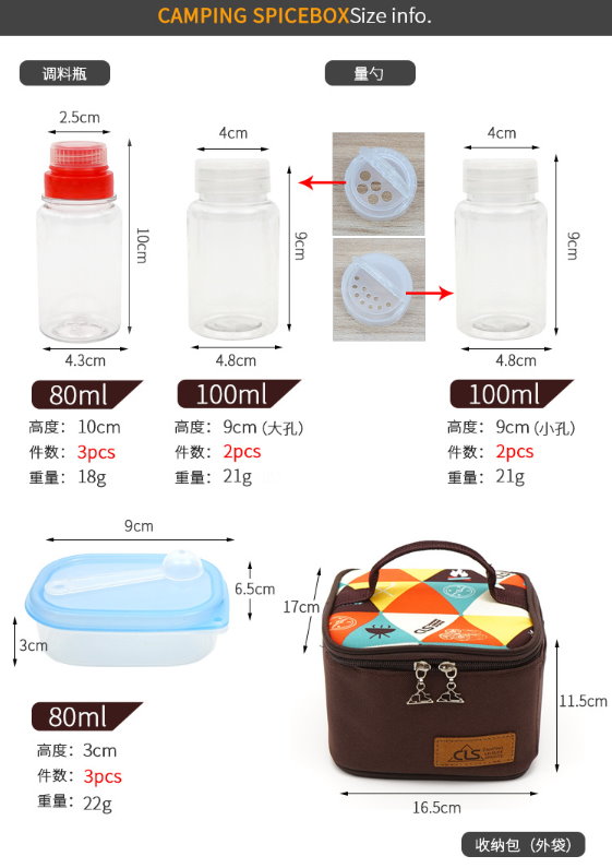 特色:在戶外或者在廚房都可以簡單方便使用的調味套裝組