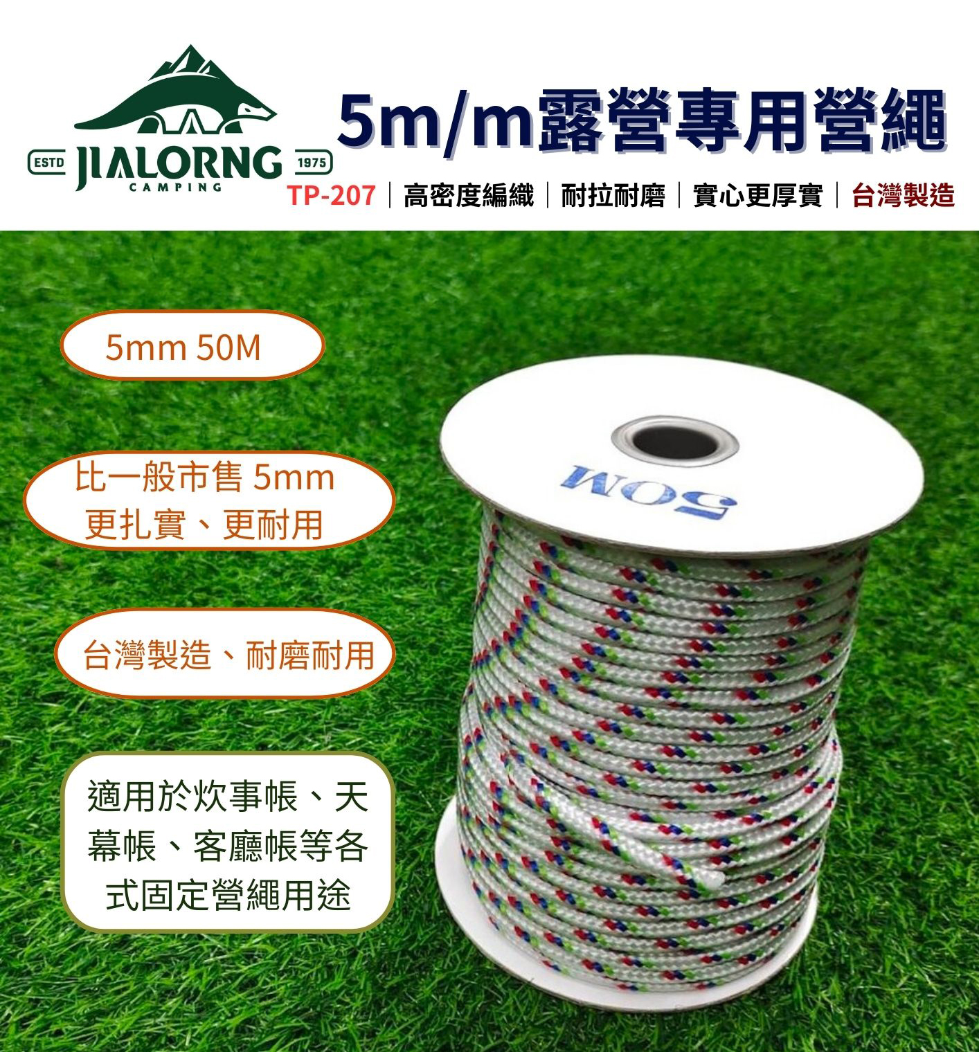【JIALORNG 嘉隆】 5m/m露營專用 營繩 50米長 天幕繩 炊事繩 固定繩 水繩 露營