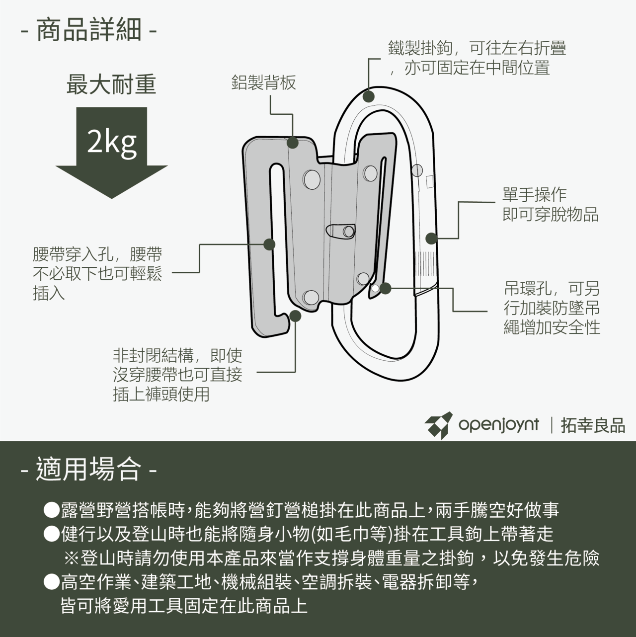 ※登山時請勿使用本產品來當作支撐身體重量之掛鉤,以免發生危險