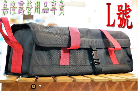 的時間與收納器具的時間,出門只要提出去,回家後又可整齊的放置在裝備架上。萬用工具袋它是長型的立體外袋,所以很適用放置長型的廚具,如刀具、碗、料理剪刀、筷子、