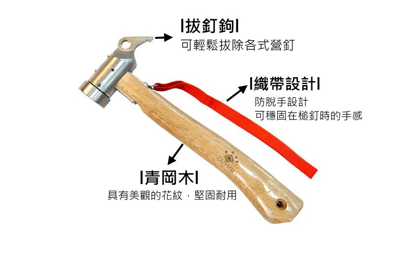 ● 拔釘鉤功能:可輕鬆拔除各式營釘。