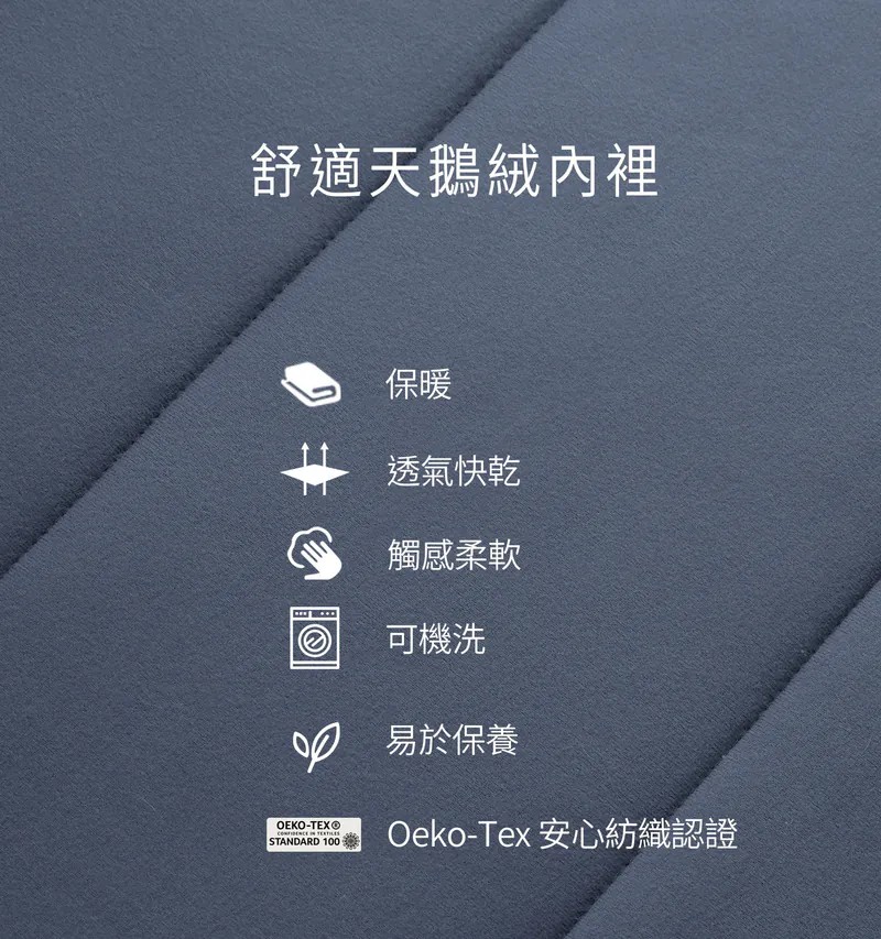 *建議使用專用洗劑或中性洗劑,切勿乾洗、勿用柔軟精與漂白劑,以免傷害填充物,降低保暖效果。