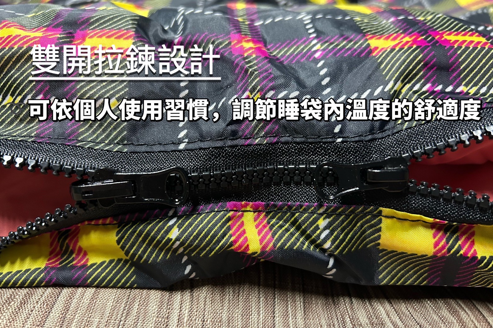 ◆雙開拉鍊設計,可依據不同氣候及個人使用習慣,來調節睡袋內溫度的舒適度 。