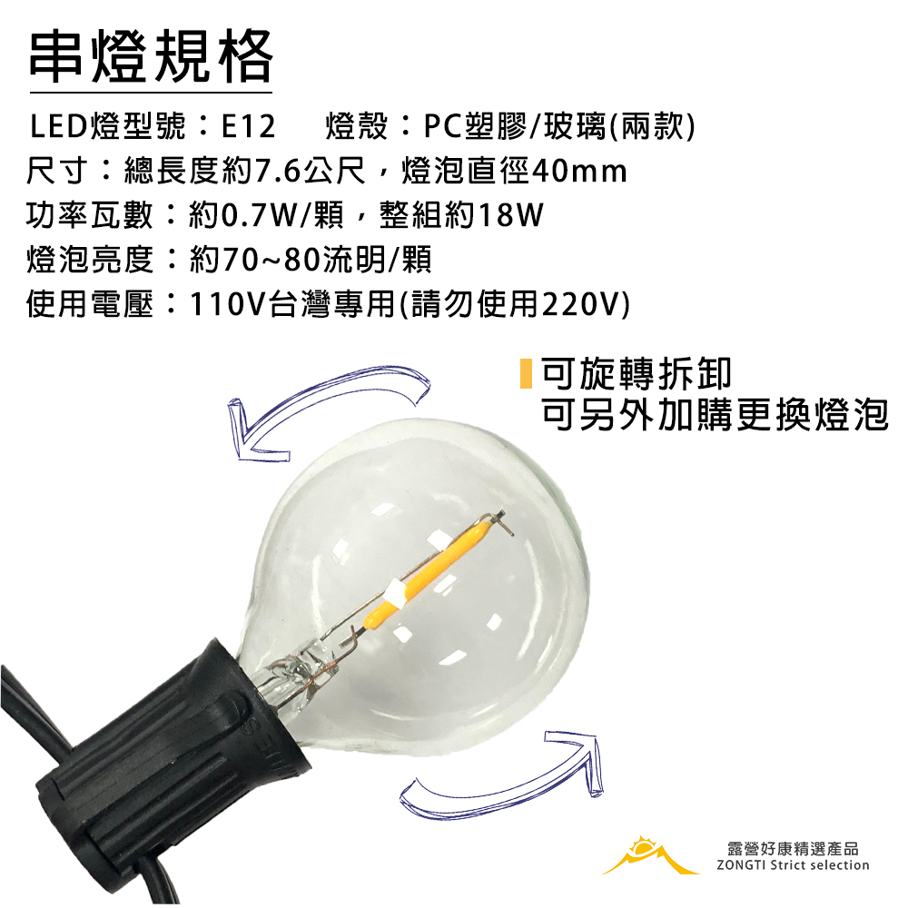 品名 : G40 LED暖黃光燈串(25顆燈泡)