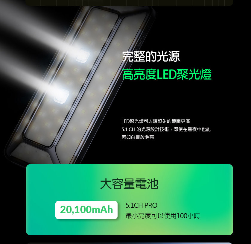 ‧創新的光源設計和最先進的技術,歷代最高規格的行動電源LED燈。