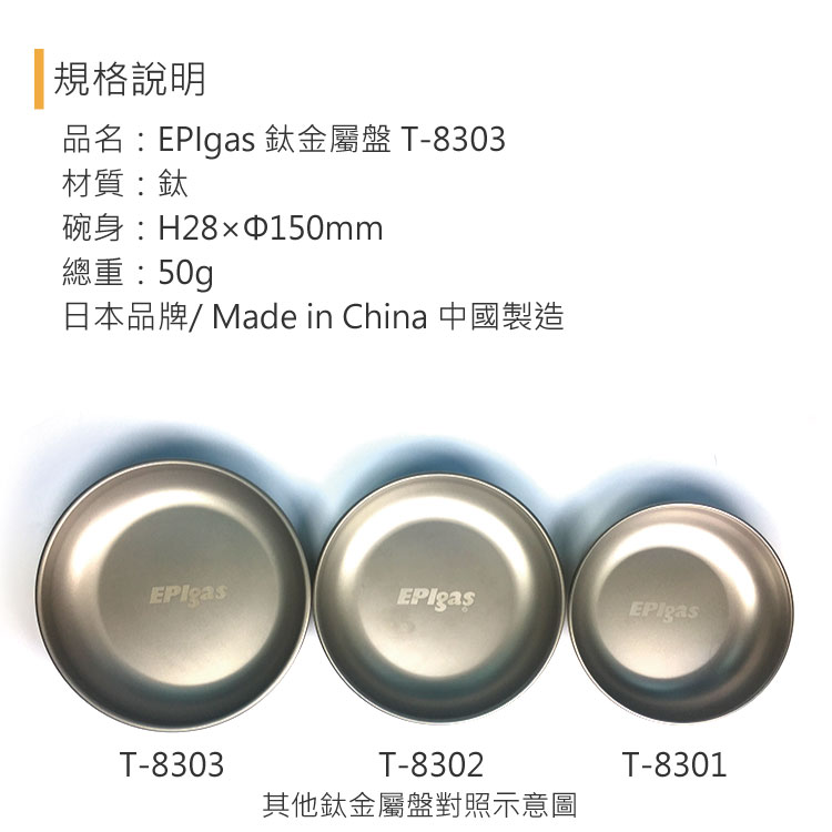 【JIALORNG 嘉隆】EPIgas 鈦金屬盤 T-8303 【大/一盤】鈦盤 登山盤