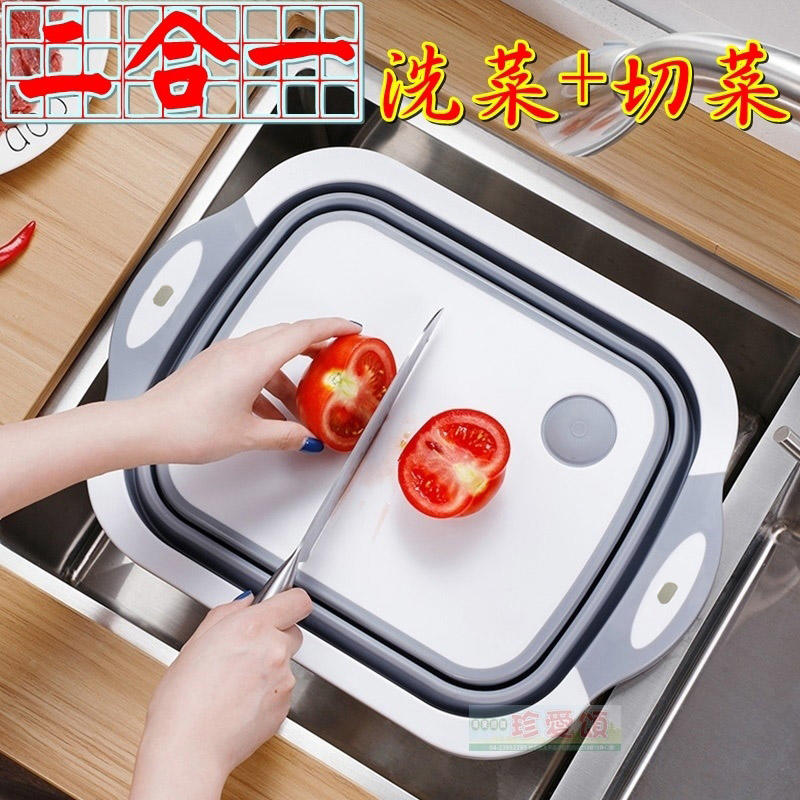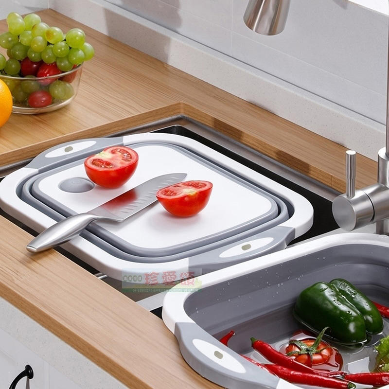 洗菜+切菜 折疊洗菜籃 折疊水槽 洗菜盆 摺疊瀝水籃
