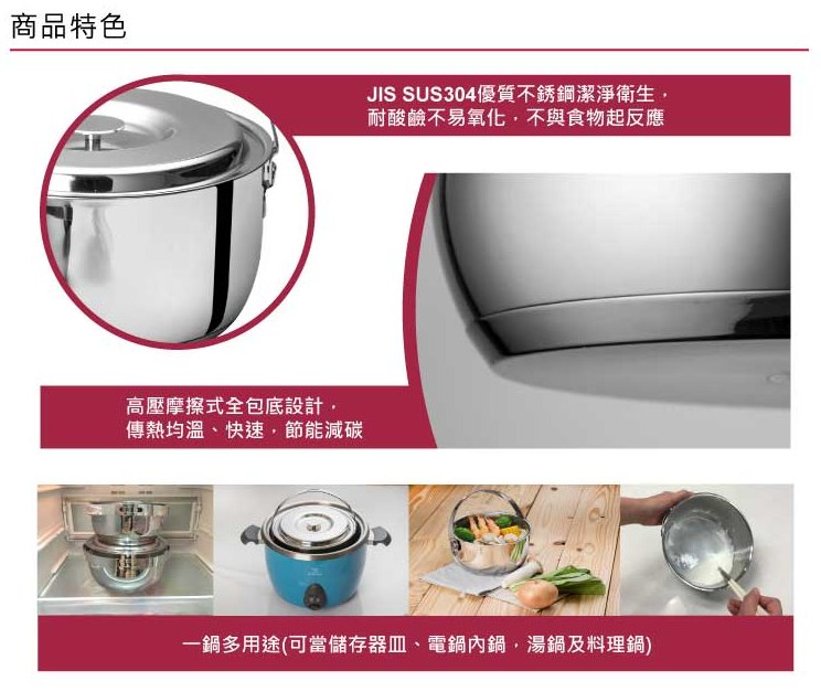 •一鍋多用途,可當湯鍋/電鍋內鍋
