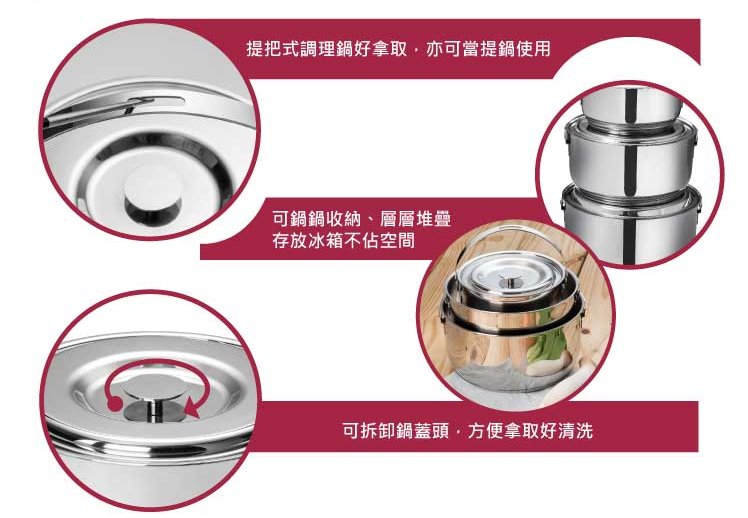 材質:身/提把-不銹鋼 JIS SUS304、蓋/蓋鈕-不銹鋼 JIS SUS304