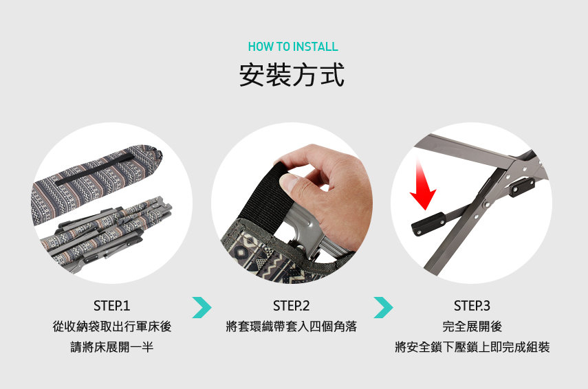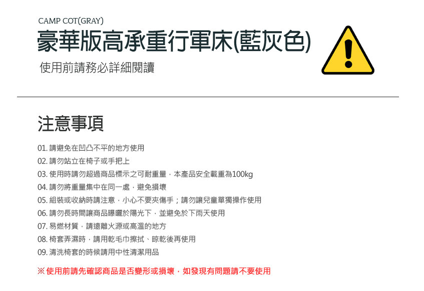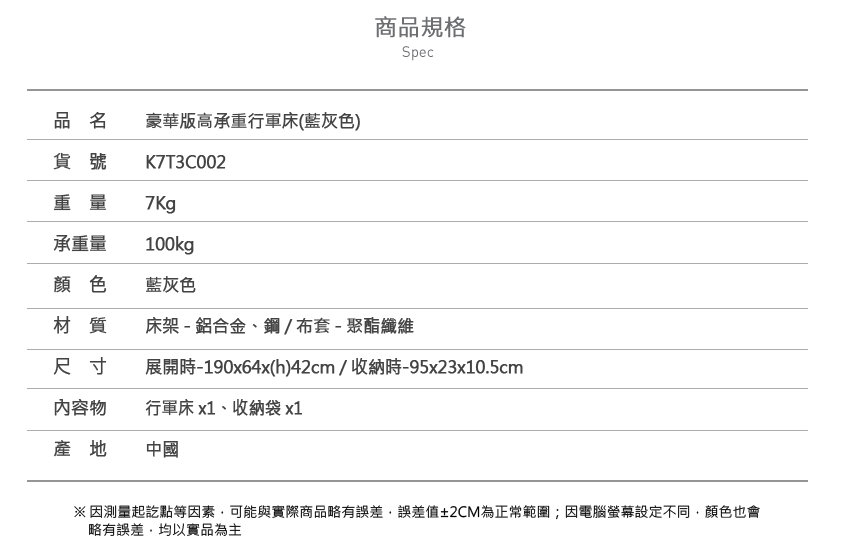 材質 : 床架-鋁合金、鋼/布套-聚酯纖維
