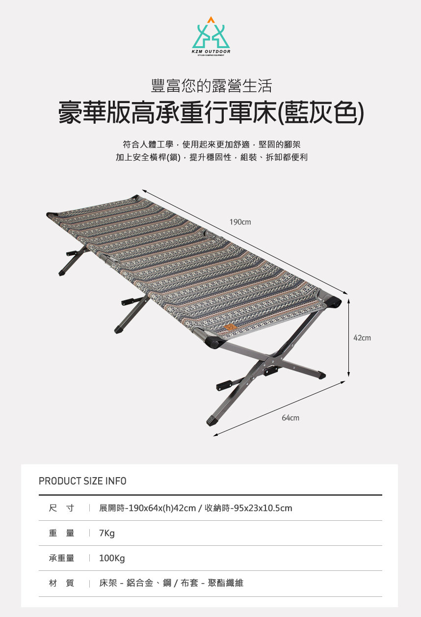 【JIALORNG 嘉隆】KAZMI KZM 豪華版高承重行軍床(藍灰色)