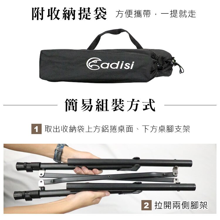 材質 : 鋁板木紋桌面、鋁合金框架、420 PU布外袋