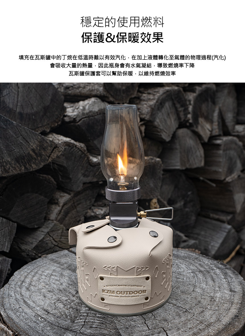 因此瓶身會有水氣凝結,導致燃燒率下降,瓦斯罐保護套可以幫助保暖,以維持燃燒效率。