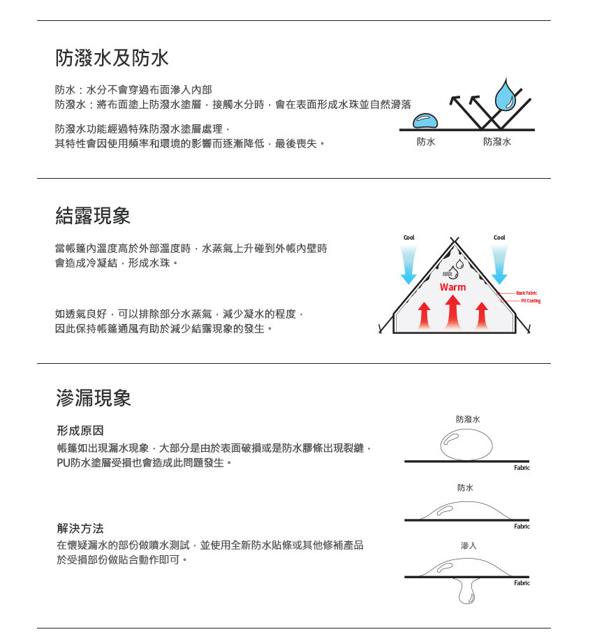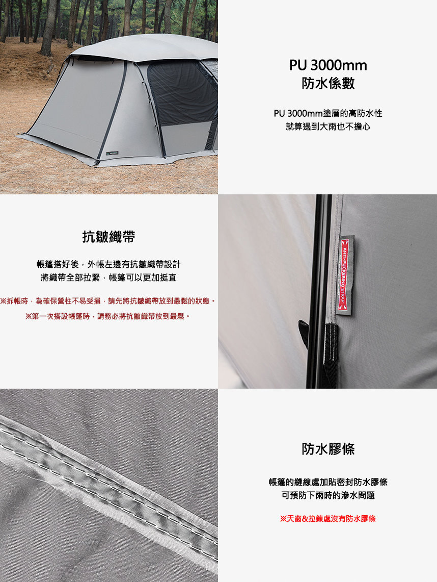 材質 : 外帳-N/RIP 70D 210T PU 耐水壓3,000mm TEFLON COATING UV