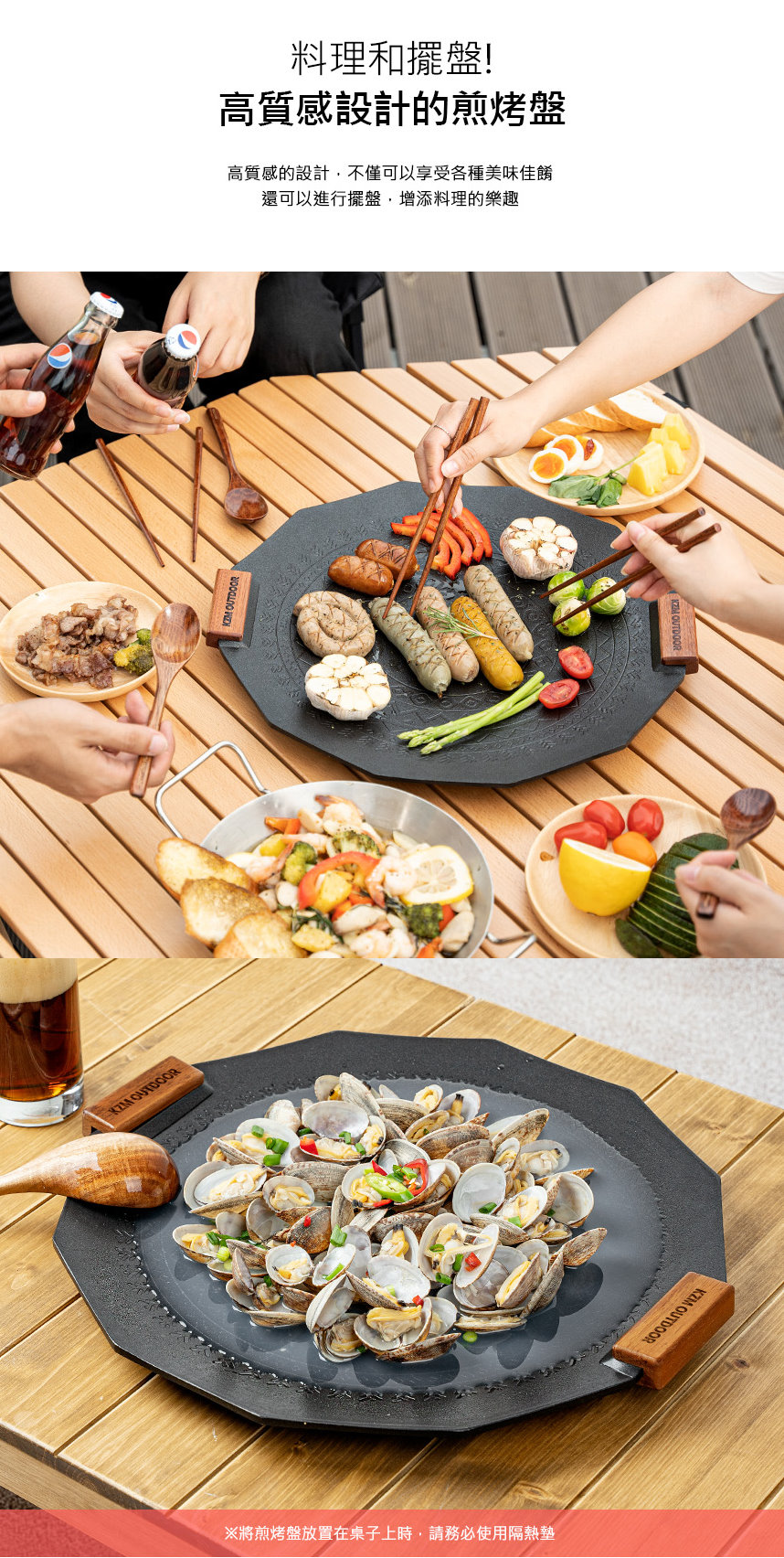 ● 盤面大尺寸和足夠的深度,適合燒烤、煎烤或湯料理等,無論何時都可輕鬆變化多種料理