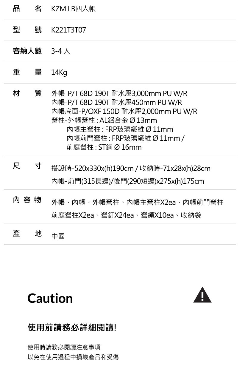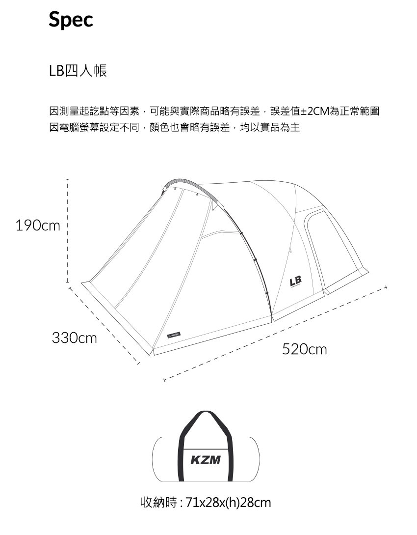 【JIALORNG 嘉隆】KAZMI KZM LB四人帳 帳篷 四季帳