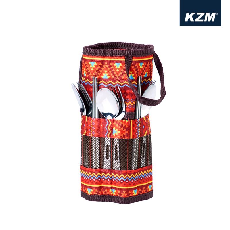 KAZMI KZM 不鏽鋼餐具組附收納袋(紅色)