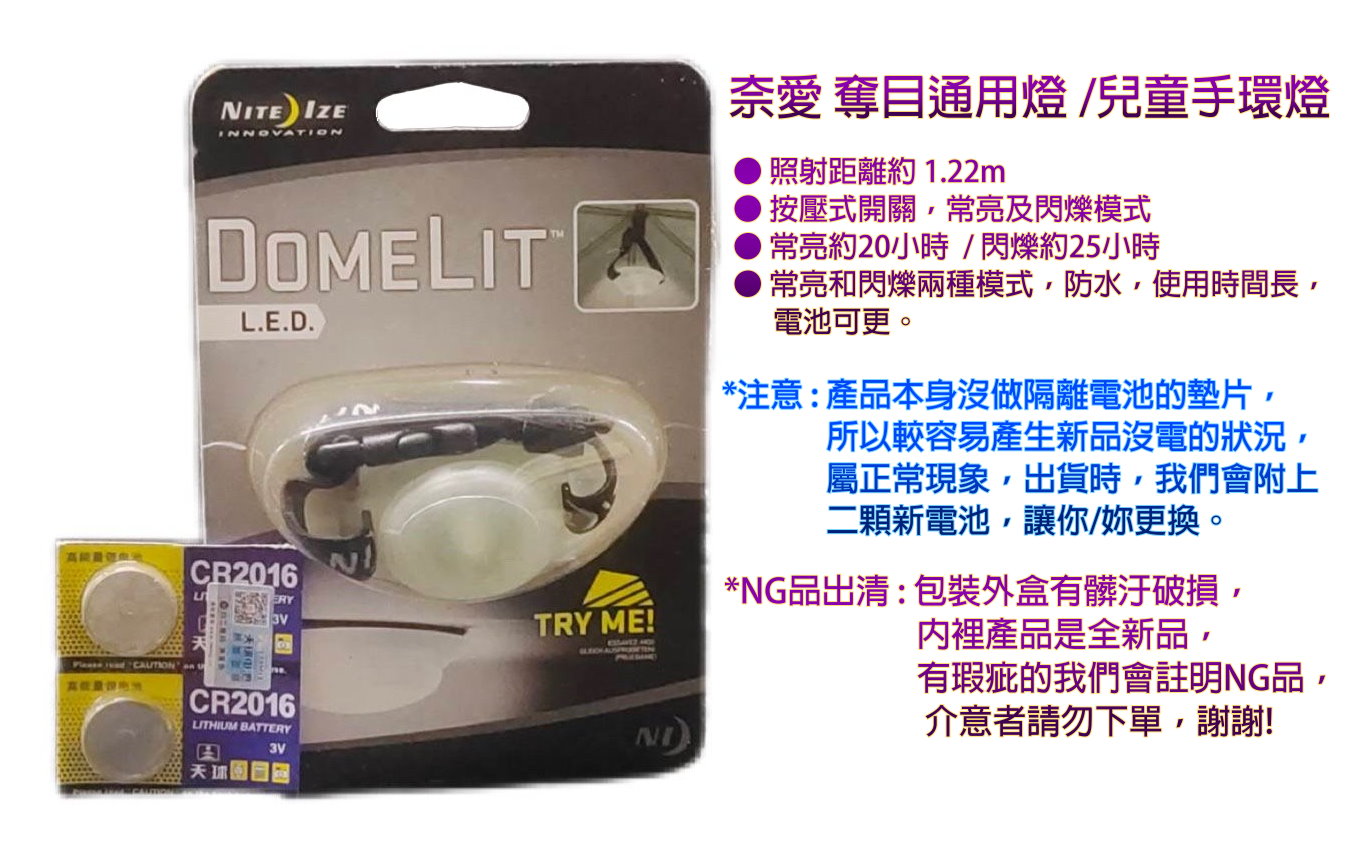 電池(內含) 2016*2顆(可更換電池),常亮約20小時,閃樂約25小時。