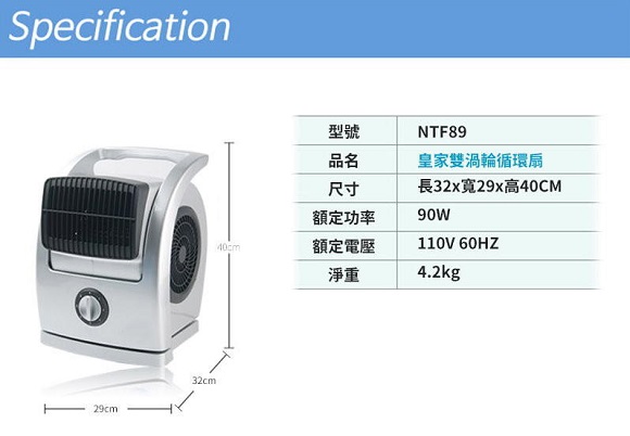 品名 : NTF89 皇家雙渦輪循環扇+嘉隆自製專用外袋