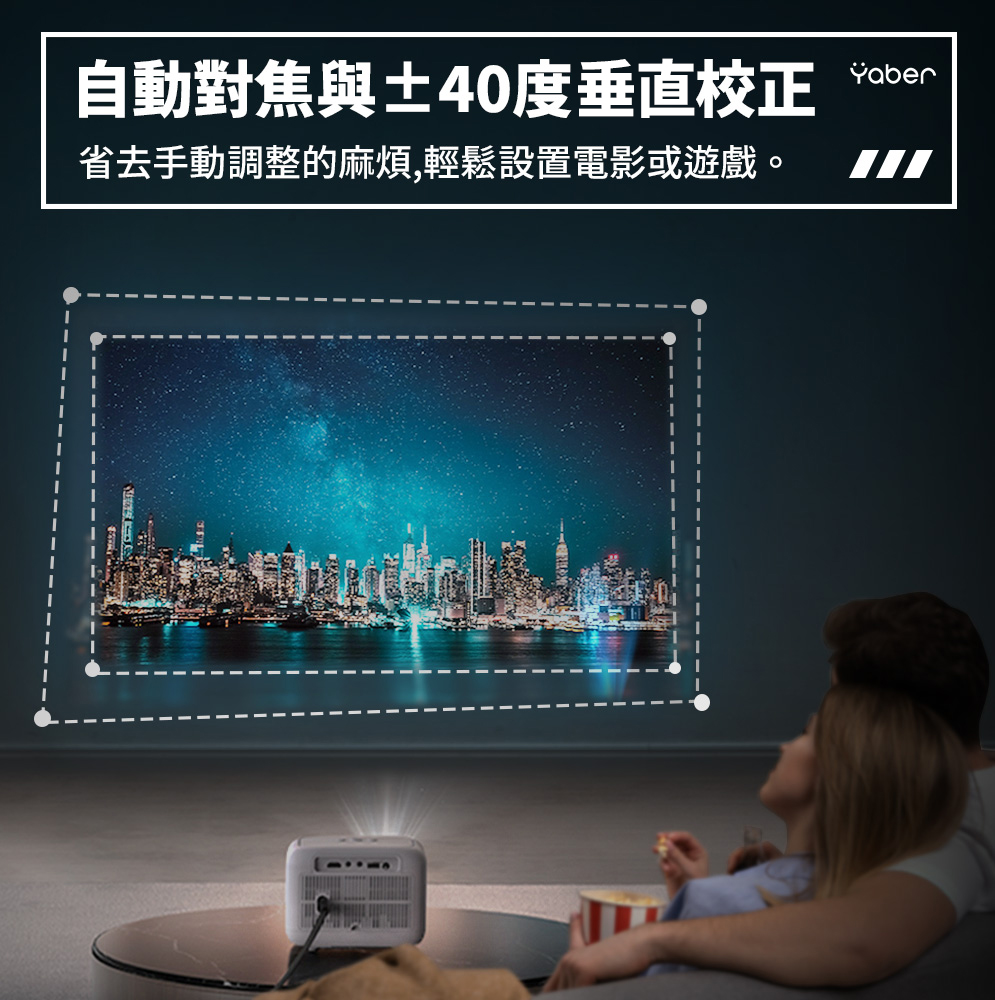 【JIALORNG 嘉隆】YABER 青春LITE版1080P投影機L1(自動垂直校正 Wifi 家用商用露營戶外)
