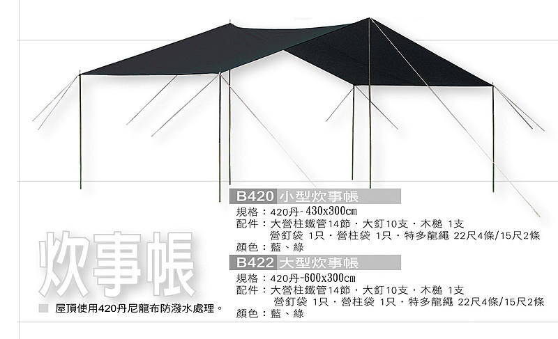 ‧屋頂使用420丹,尼龍布防潑水處理